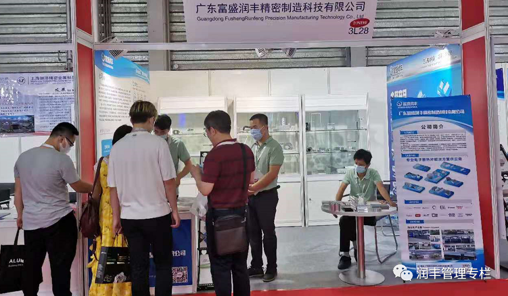 富盛润丰展区展品内容丰富,展示形式多样,太阳花、铜铝结合散热片、铲齿散热片、镶齿、高倍齿散热片等科技成就较高,吸引着众多客商前来参观。富盛润丰的业务精英们同来自国外及全国各地的领军企业进行洽谈业务,分享与传递当今世界较先进铝加工生产及应用技术。